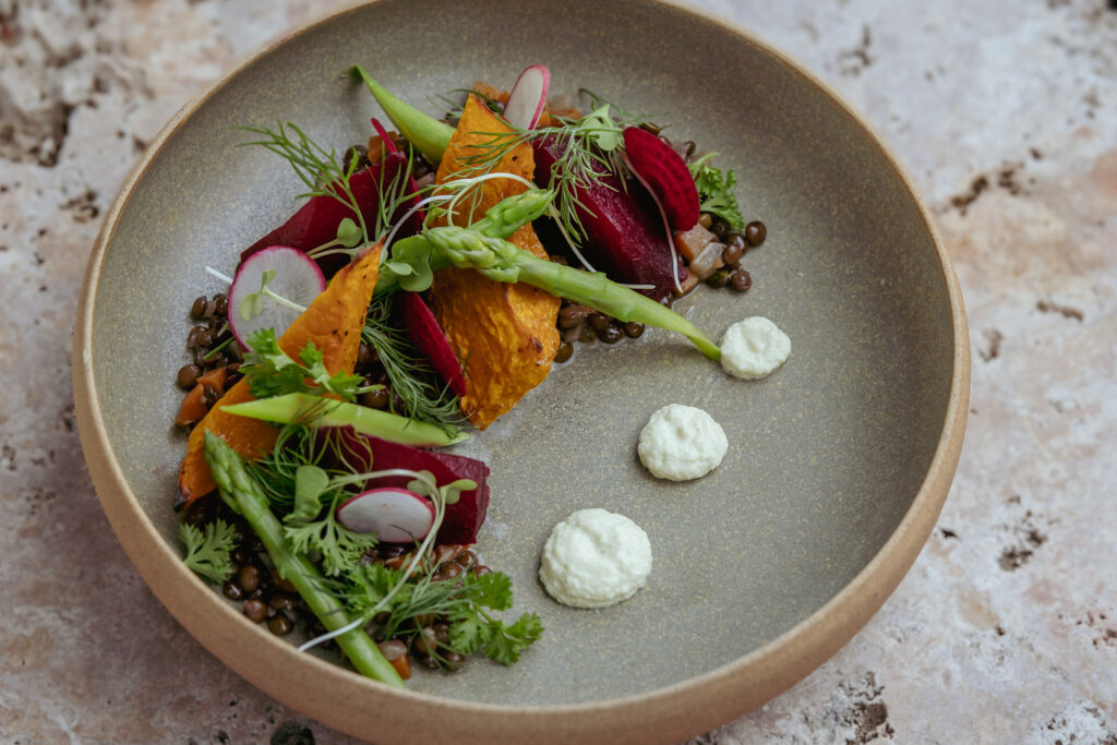 Dishes are created from seasonal produce grown at our nearby permaculture farm, moving directly from soil to plate.