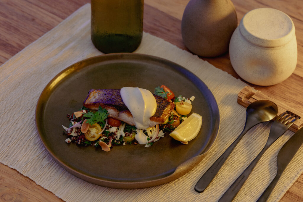 Upon request, responsibly sourced catch of the day from a local fisherman is also available, supporting the surrounding community while honoring sustainability.