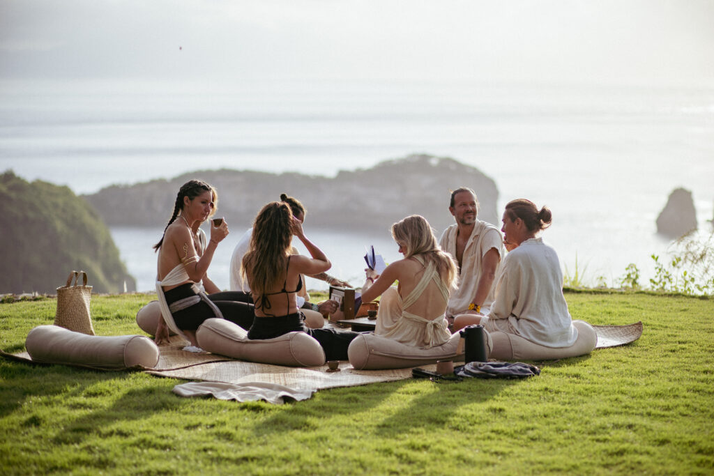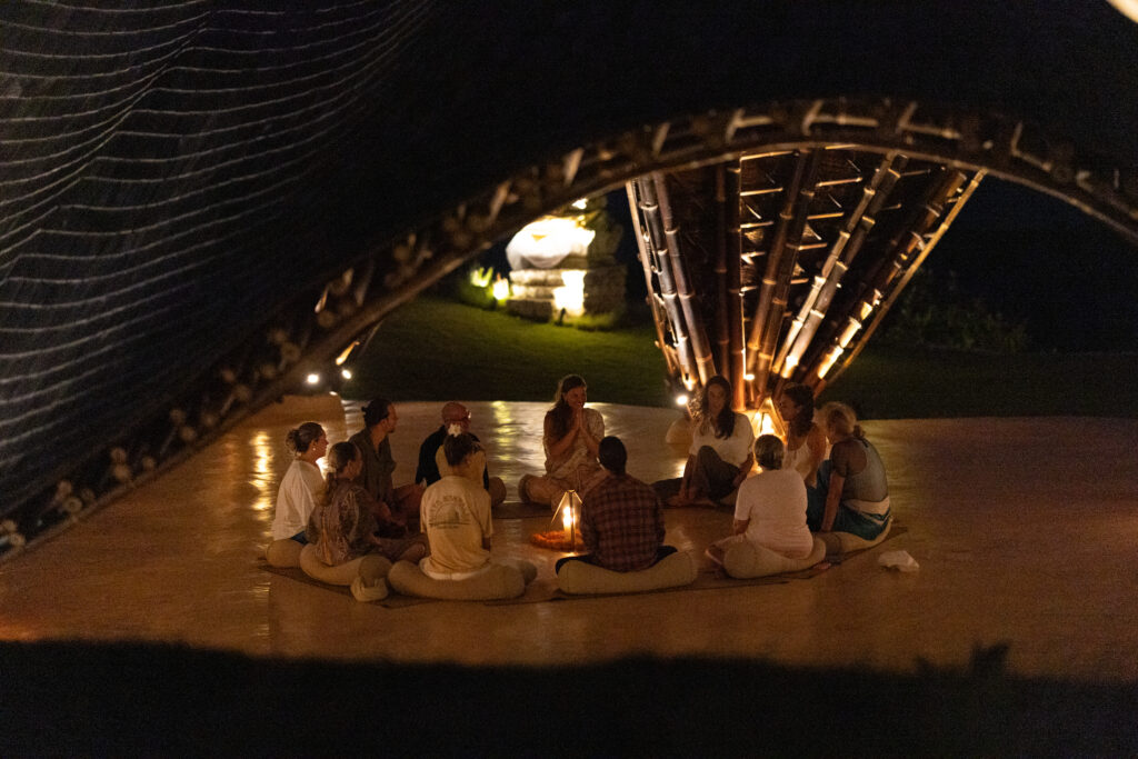 A fire and cacao ceremony creates a space for open reflection and authentic dialogue.