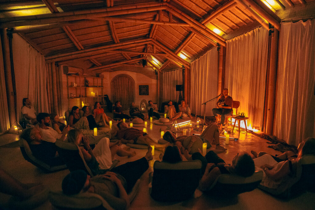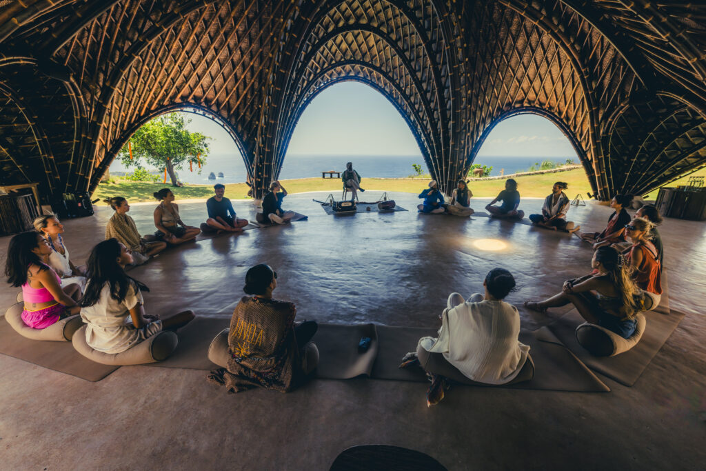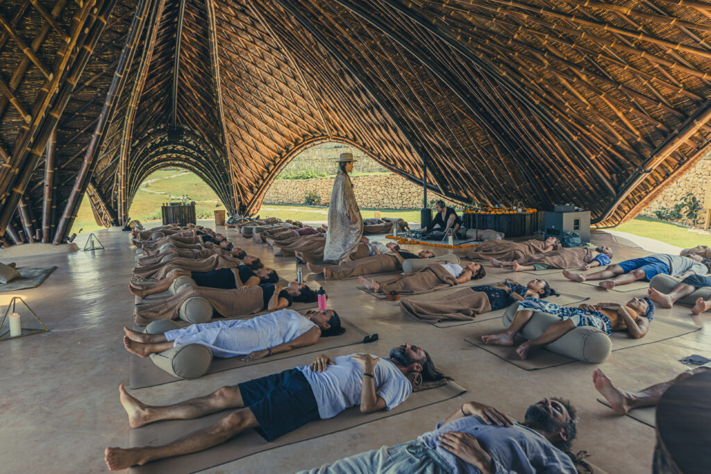 In the evening, the group gathers beneath the manta-shaped bamboo shala for an opening circle centered on trust and fluidity. Intentions are shared, and the foundation of resonance and authentic presence is established.