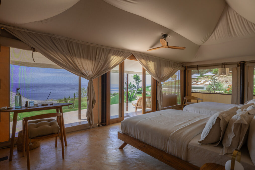 Accommodating up to 26 guests, with flexibility for 38, the retreat remains intimate and exclusive. Each suite features a private bathroom, climate control, and an ocean-view terrace, allowing guests to stay deeply connected to nature in comfort.