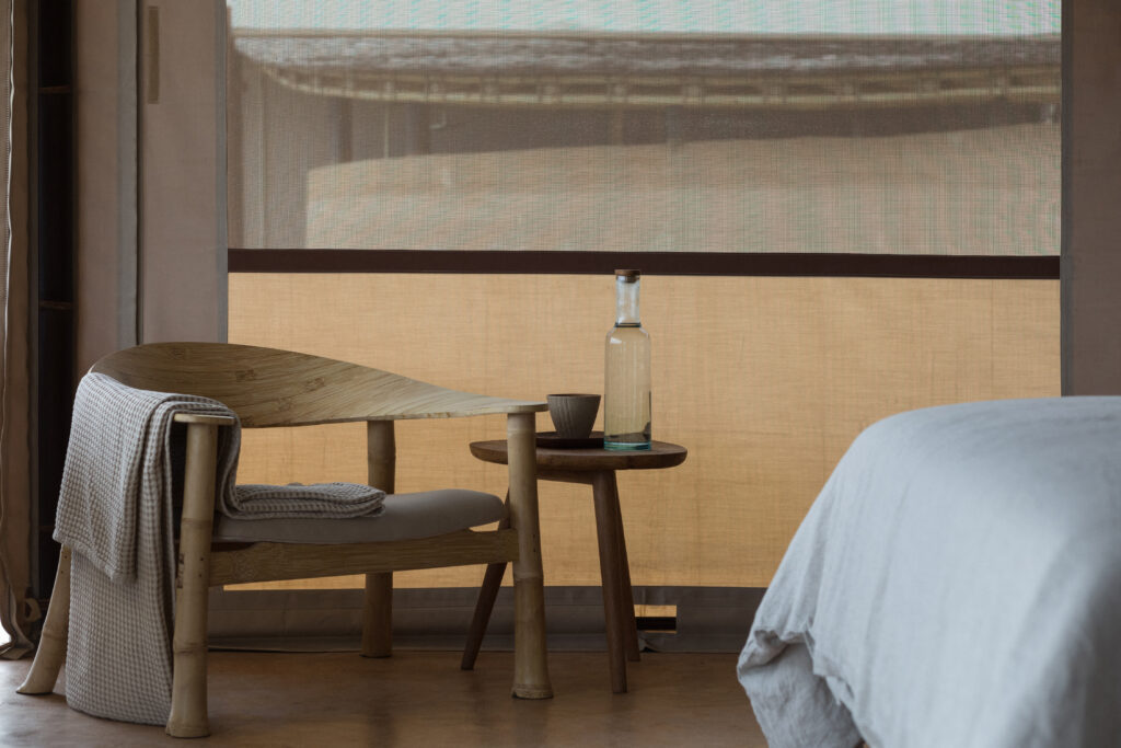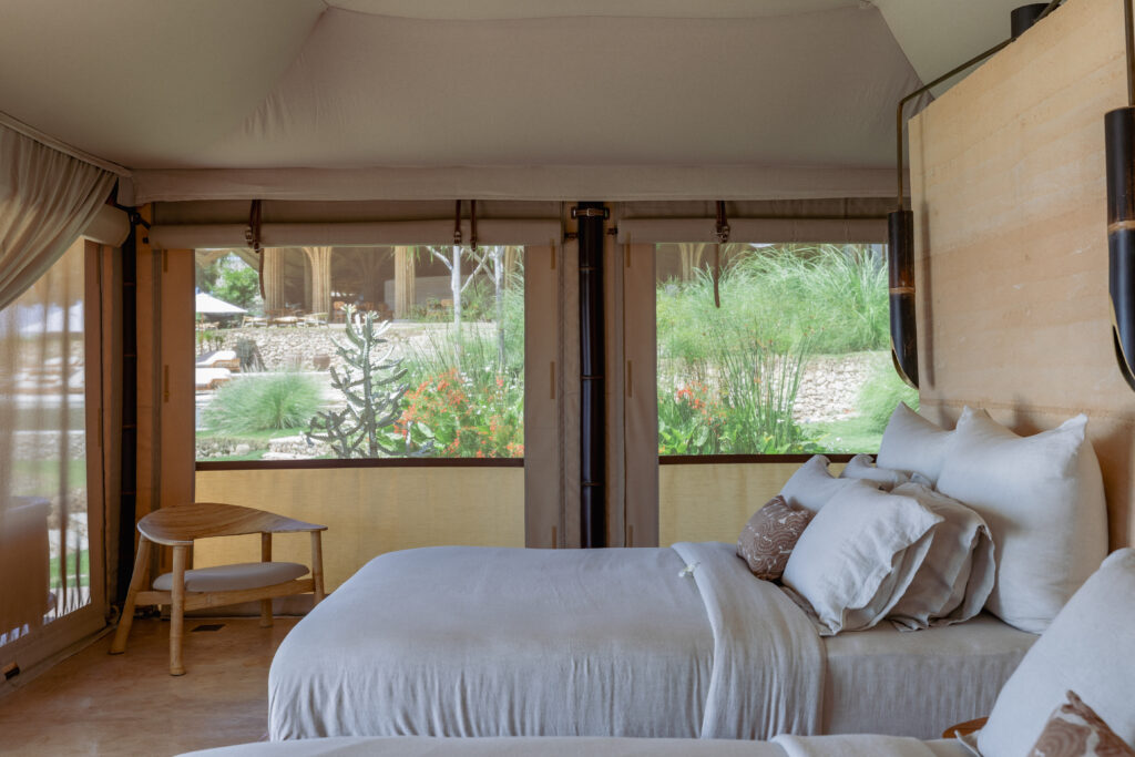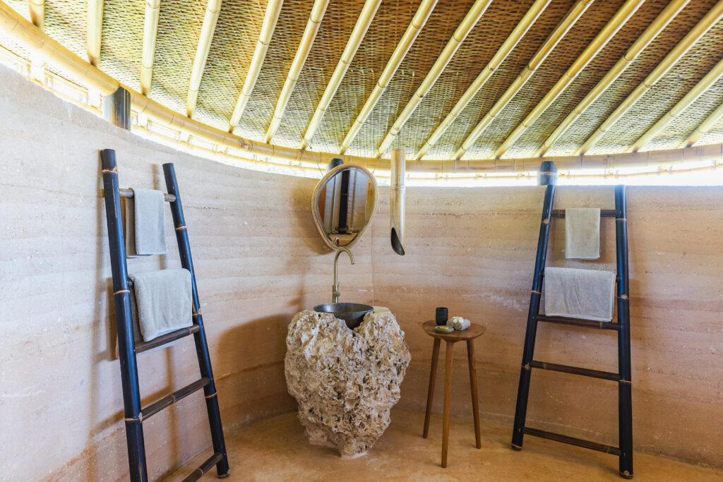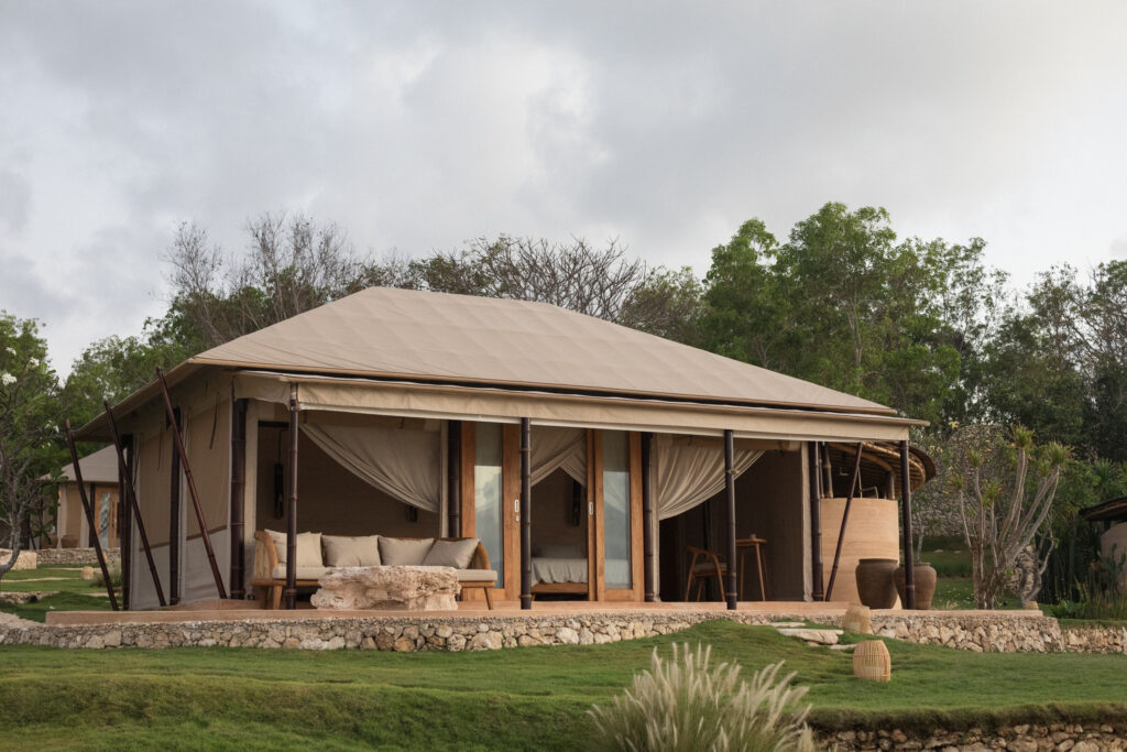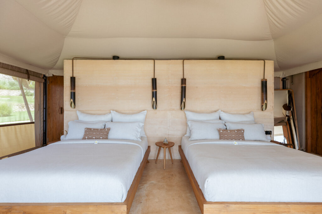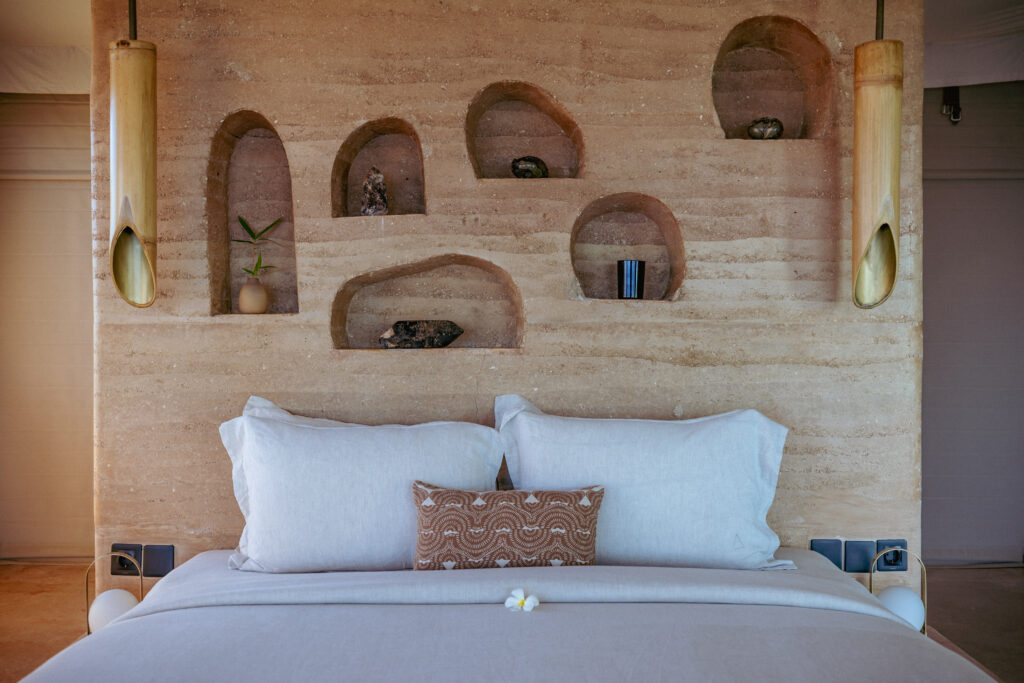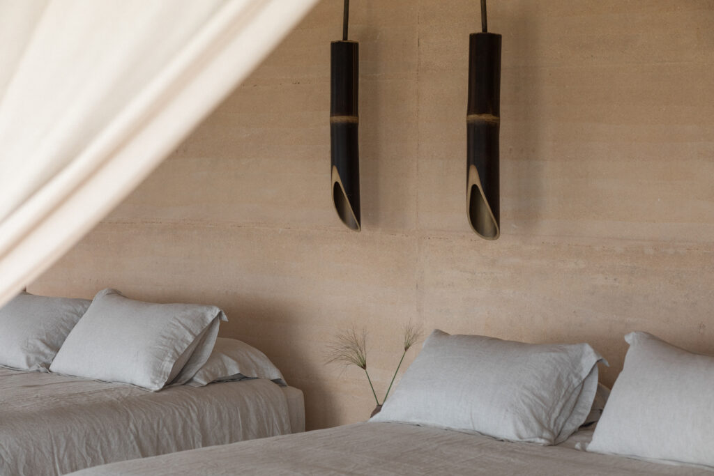 Sustainable Luxury Tent Suites modified with rammed earth interior and sustainable finishing.